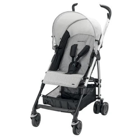 Livrée avec canopy, habillage pluie, panier textile de 20 Litres et kit d’adaptation groupe 0+.